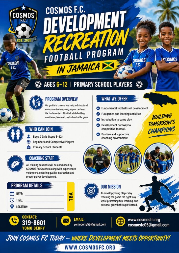 COSMOS FC proudly introduces our Development Recreation Football Program designed for boys and girls ages 6–12. This program is perfect for beginner and developing players, as well as those looking to grow into competitive football.
